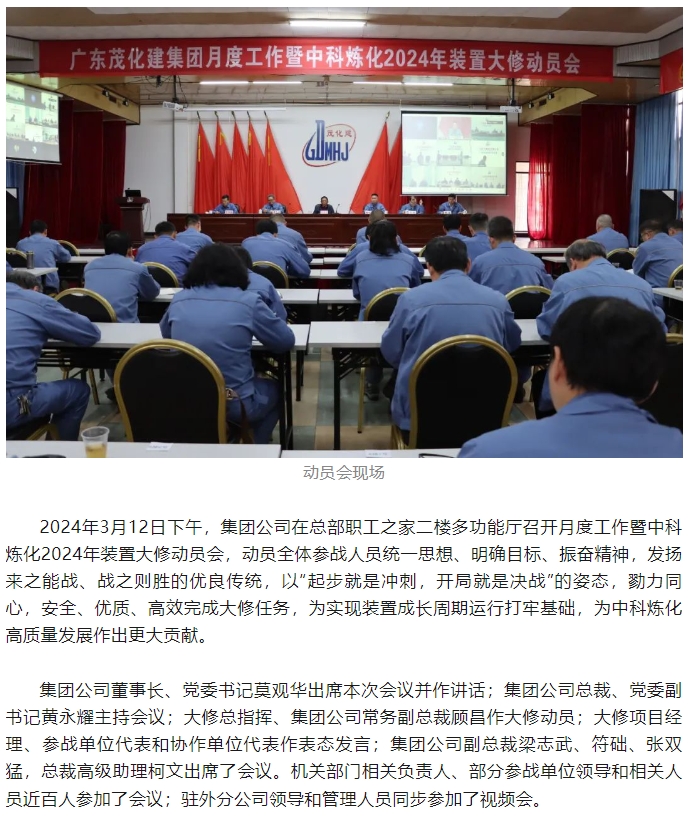 集團公司2024年中科煉化裝置大修動員會召開