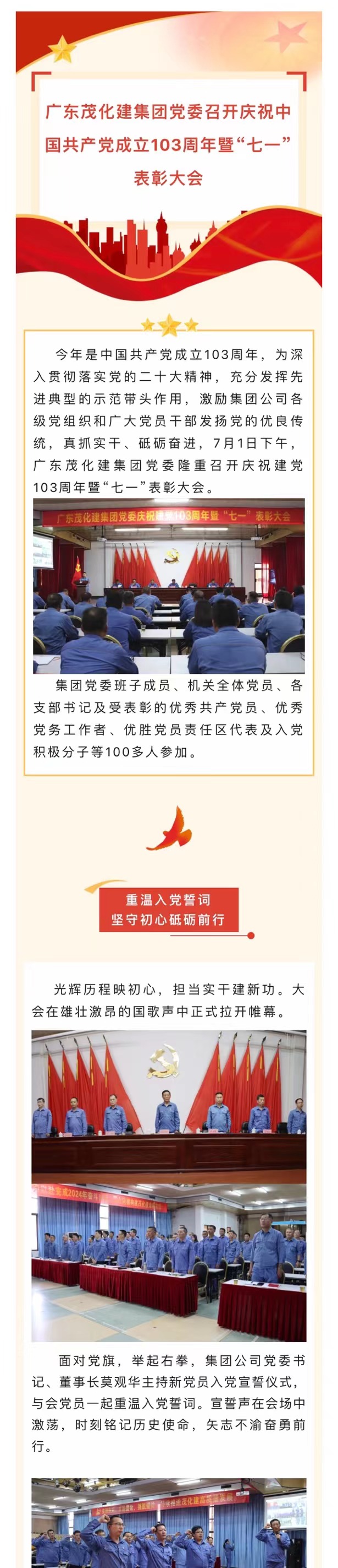 廣東茂化建集團黨委召開慶祝中國共產黨成立103周年暨“七一”表彰大會