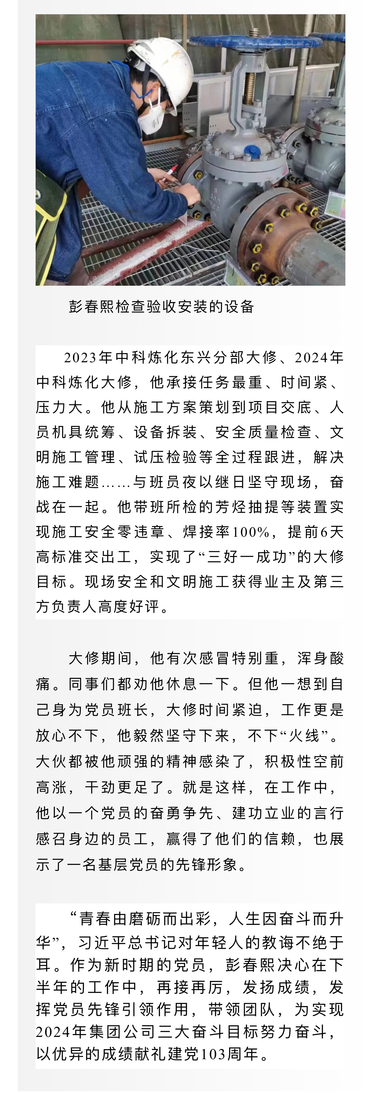 黨旗照耀我奮斗——記集團公司優(yōu)秀共產(chǎn)黨員彭春熙